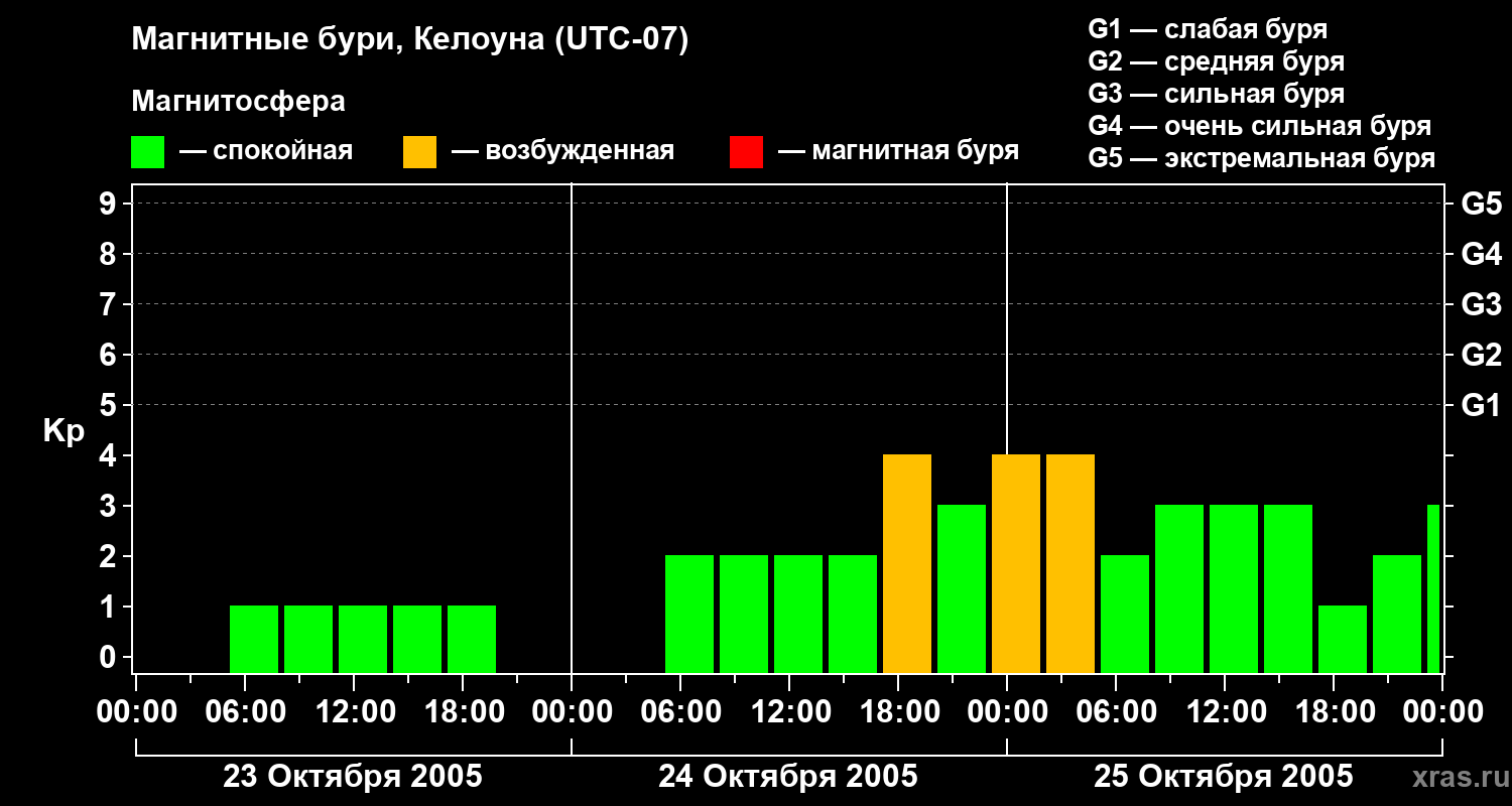 Магнитные бури в Келоуне — 25 октября 2005 года