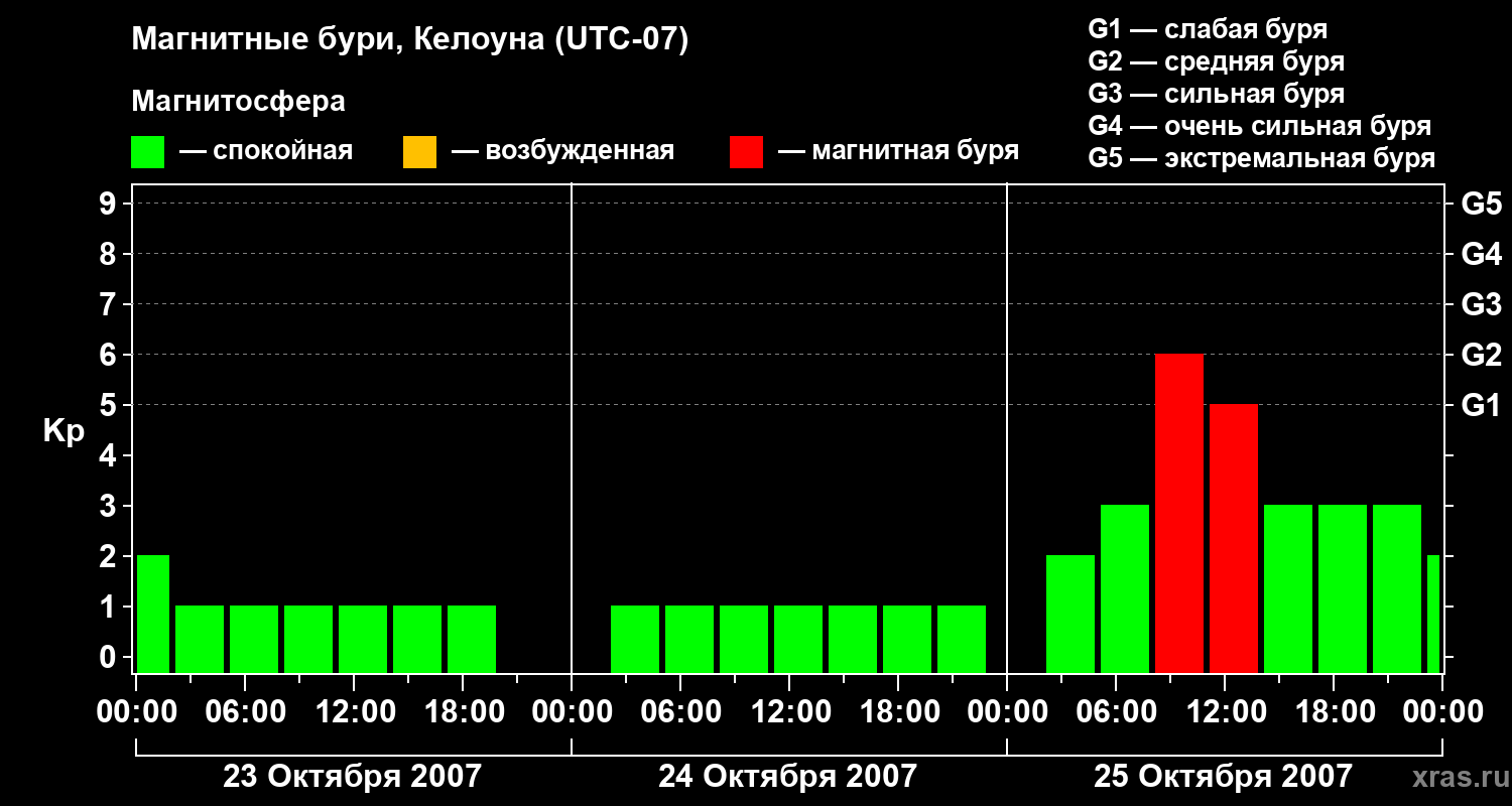 Магнитные бури в Келоуне — 25 октября 2007 года