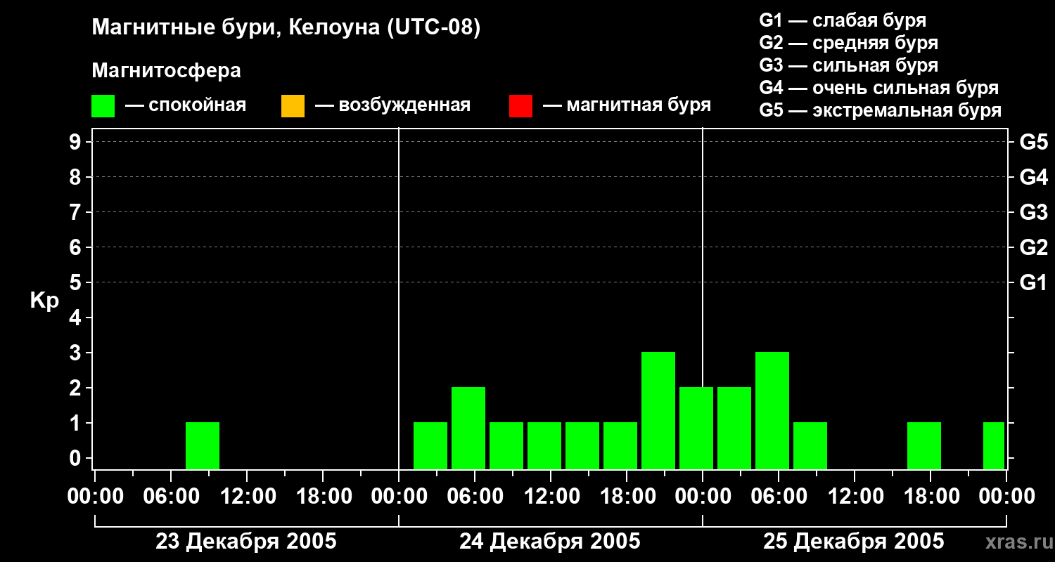 Магнитные бури в Келоуне — 25 декабря 2005 года