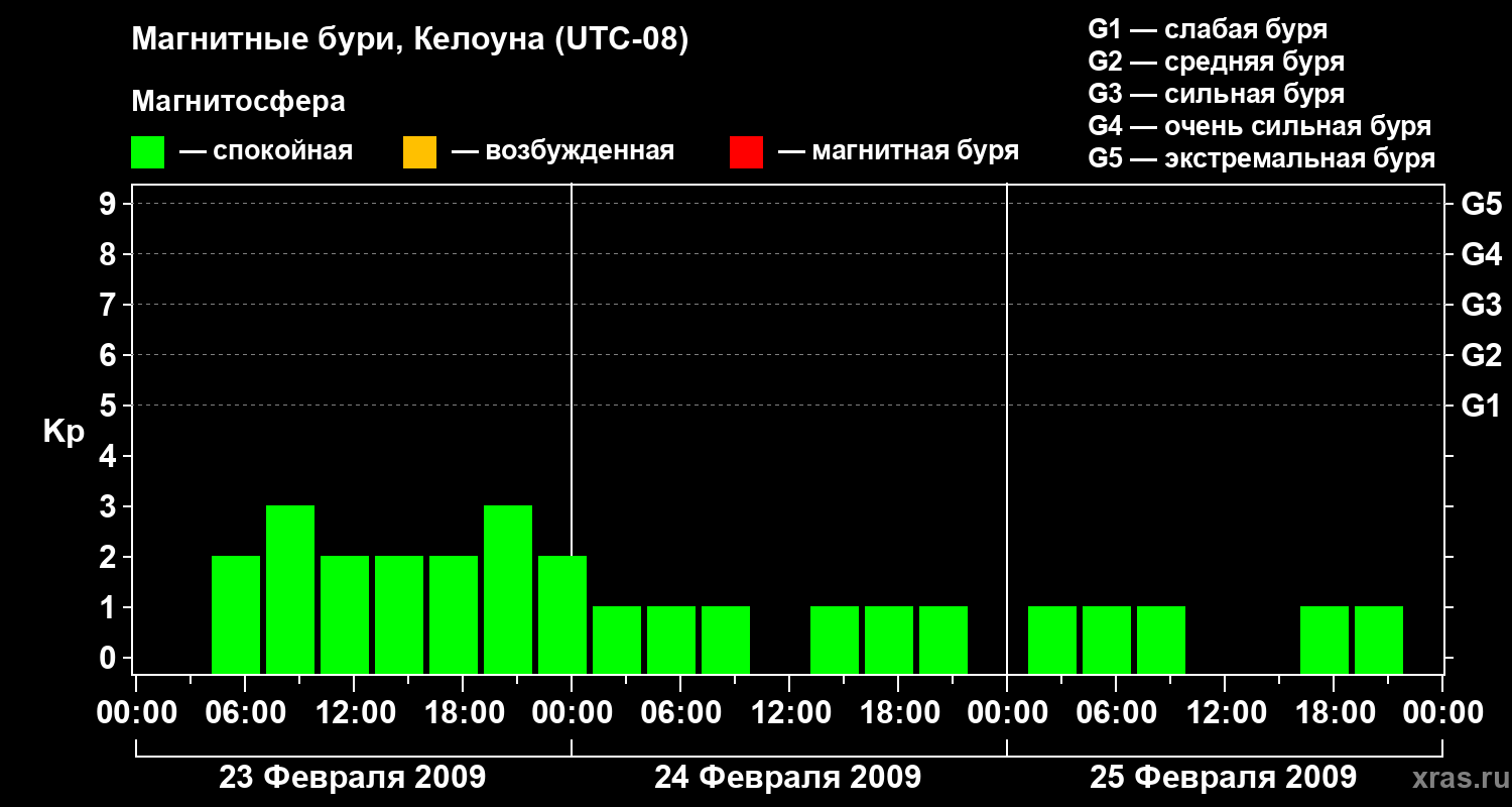 Магнитные бури в Келоуне — 25 февраля 2009 года