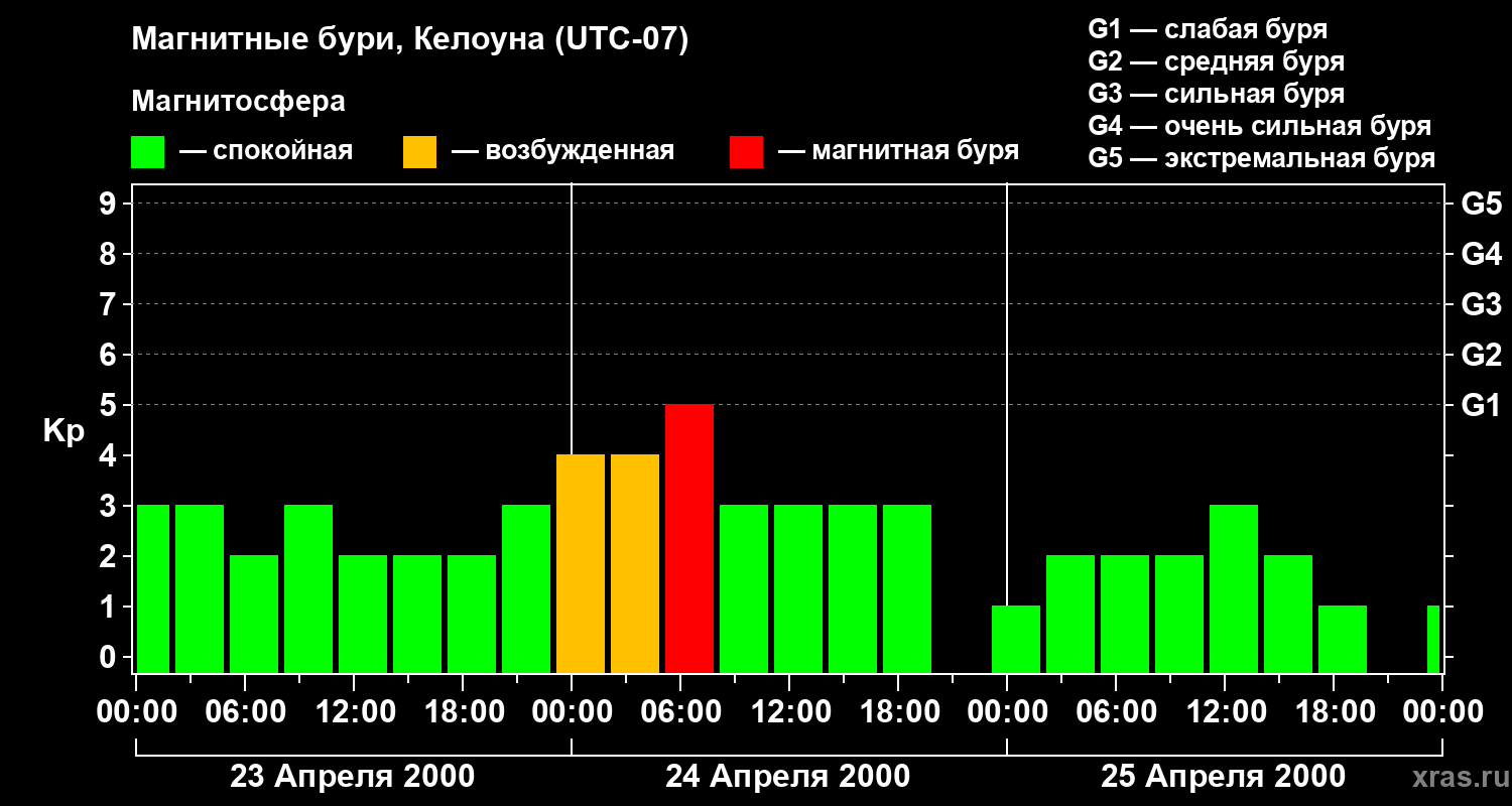 Магнитные бури в Келоуне — 25 апреля 2000 года