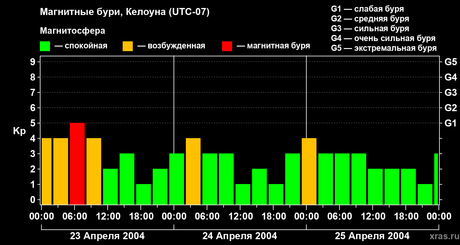Магнитные бури в Келоуне — 25 апреля 2004 года