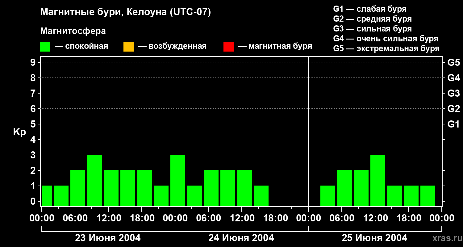 Магнитные бури в Келоуне — 25 июня 2004 года