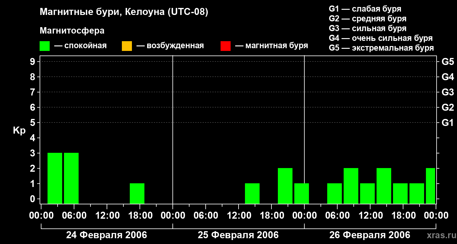 Магнитные бури в Келоуне — 26 февраля 2006 года