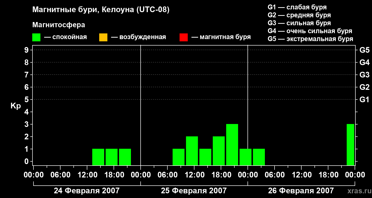 Магнитные бури в Келоуне 26 февраля 2007 года