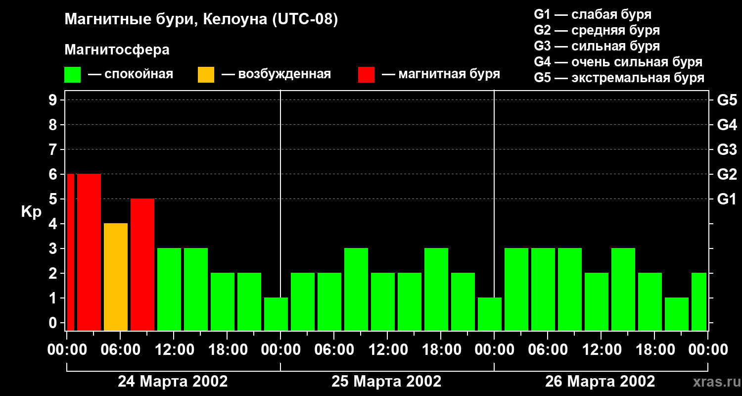 Магнитные бури в Келоуне — 26 марта 2002 года