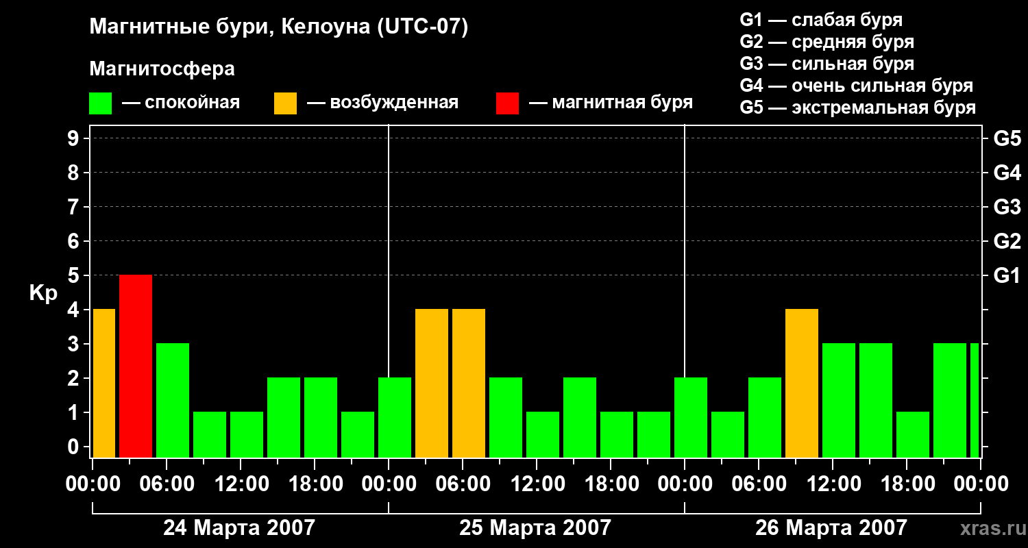 Магнитные бури в Келоуне — 26 марта 2007 года