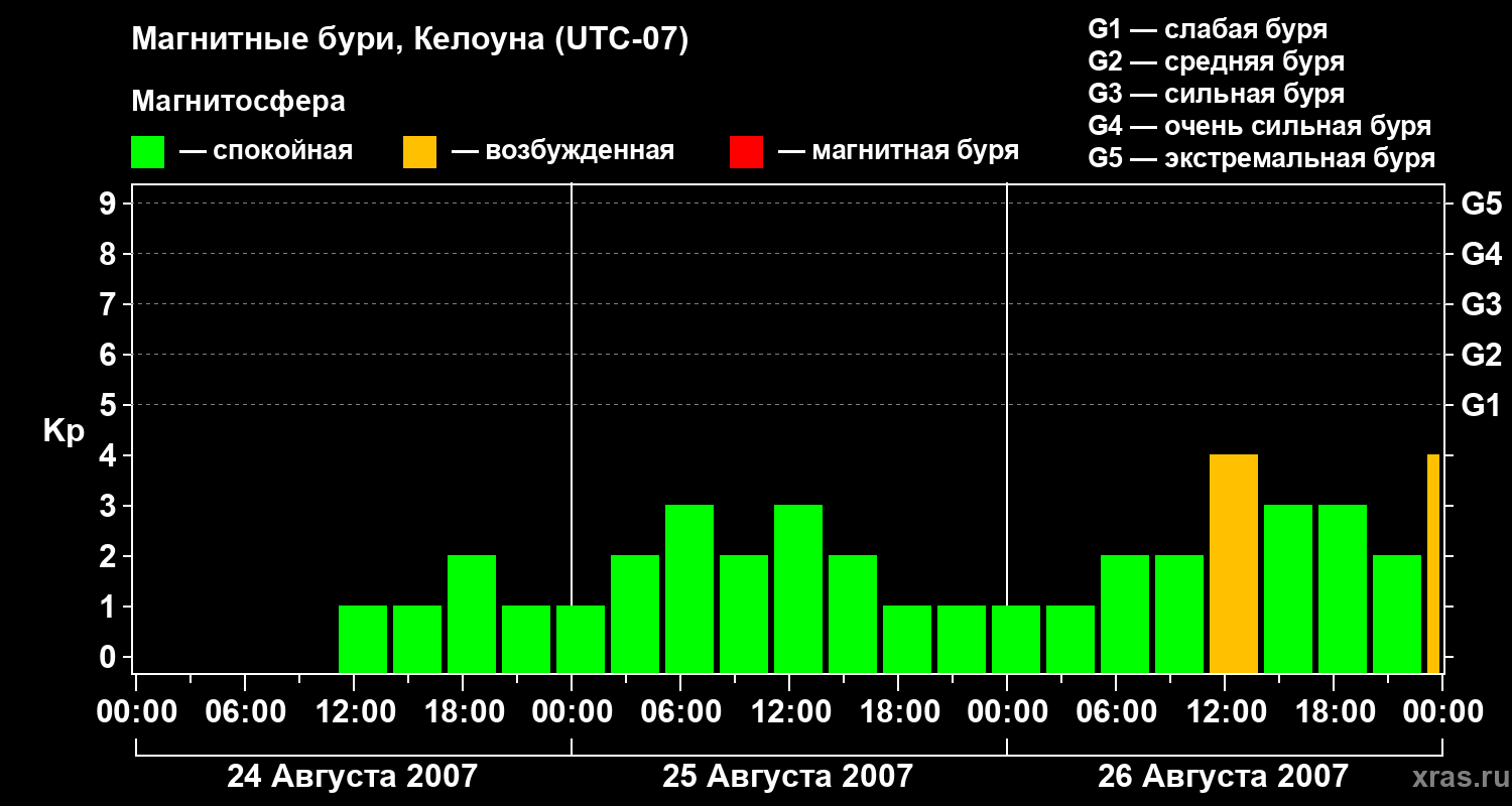 Магнитные бури в Келоуне — 26 августа 2007 года
