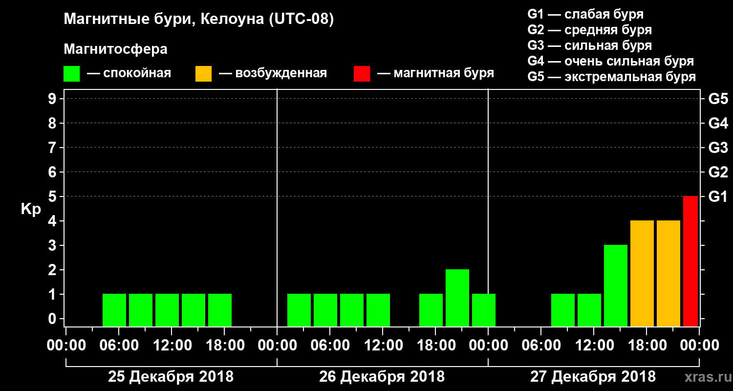 Магнитные бури в Келоуне 27 декабря 2018 года