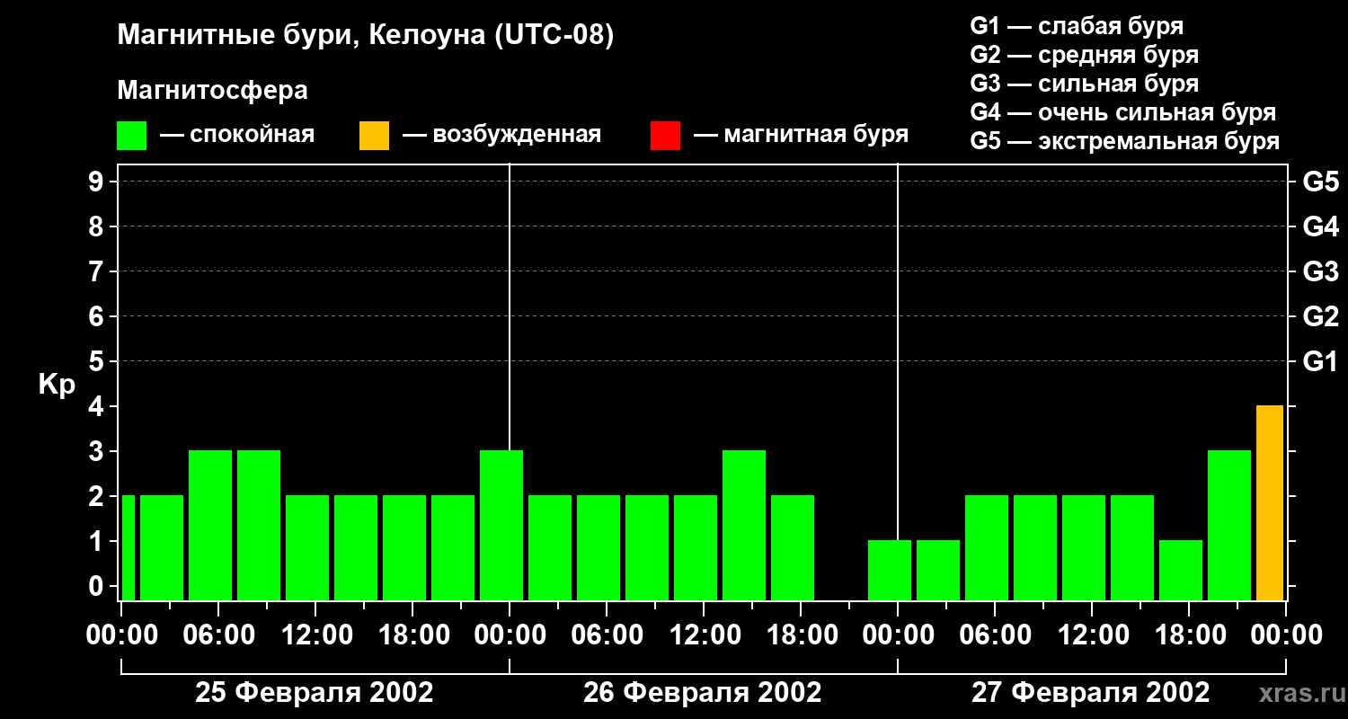 Магнитные бури в Келоуне — 27 февраля 2002 года