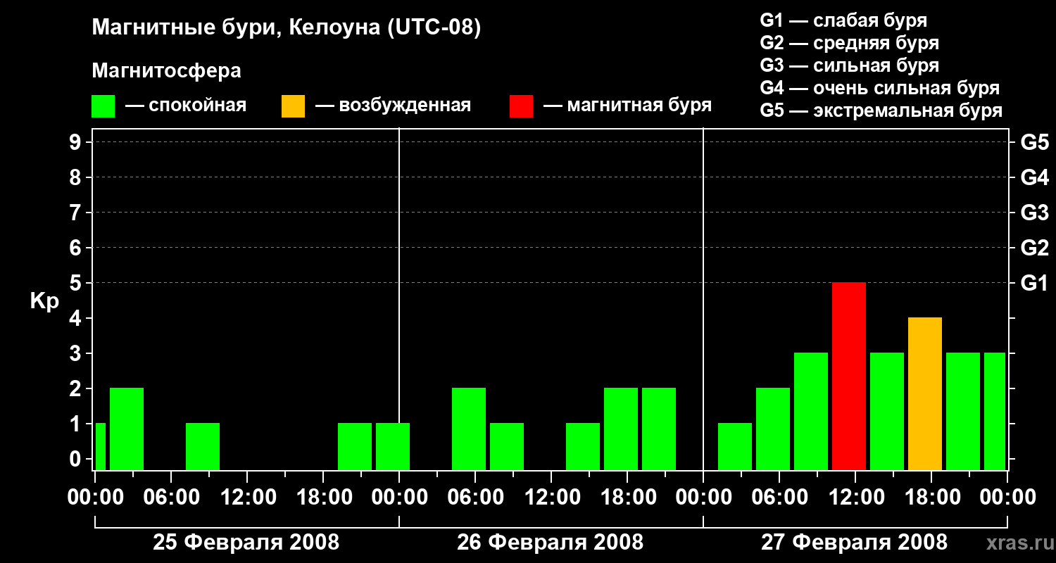 Магнитные бури в Келоуне — 27 февраля 2008 года