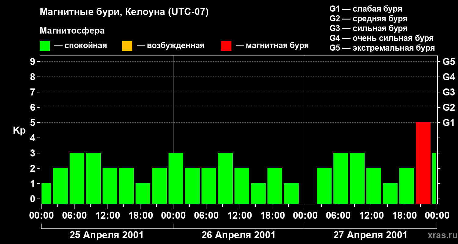 Магнитные бури в Келоуне — 27 апреля 2001 года