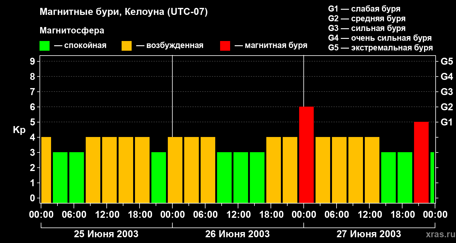 Магнитные бури в Келоуне — 27 июня 2003 года