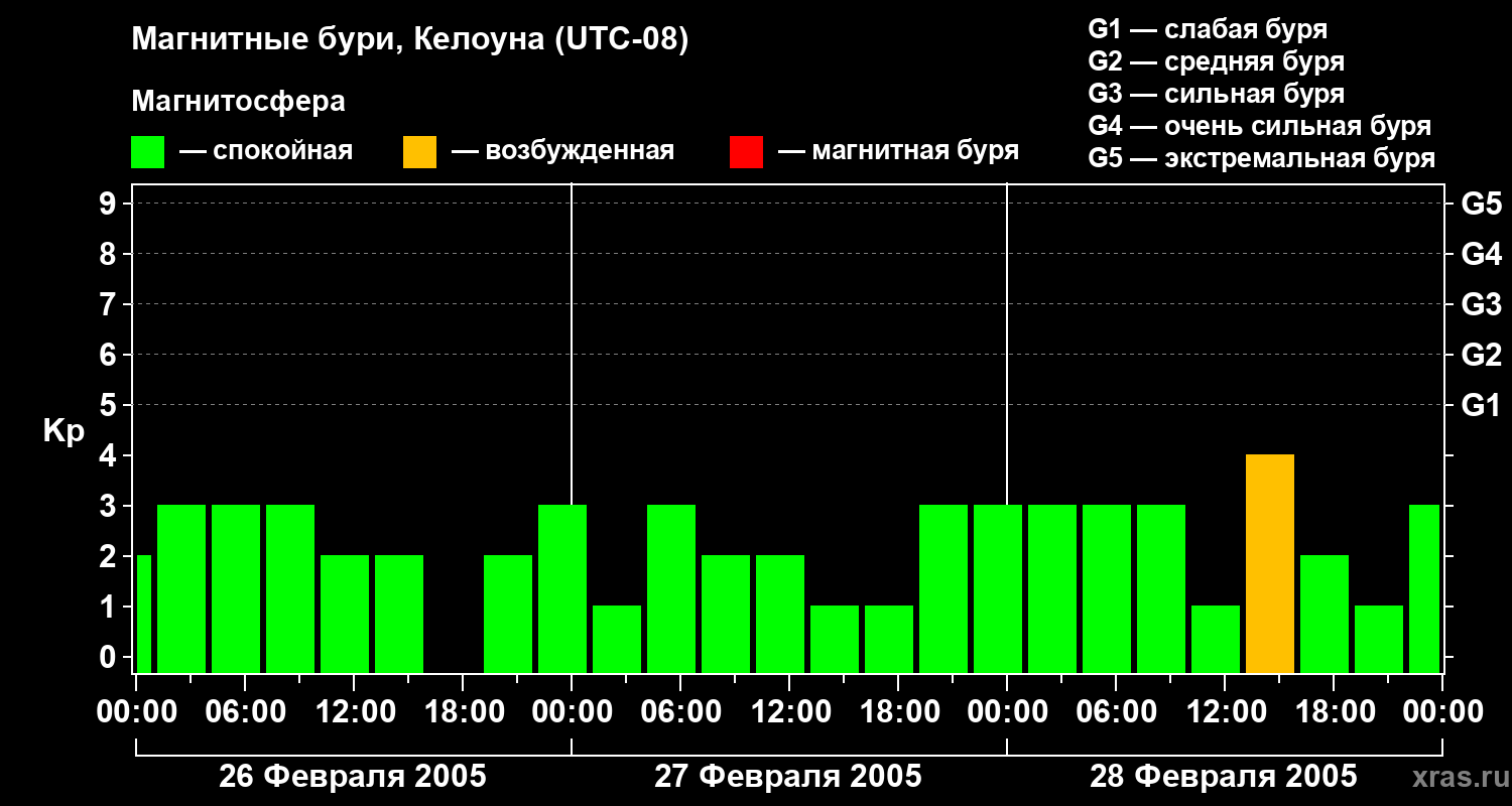 Магнитные бури в Келоуне — 28 февраля 2005 года