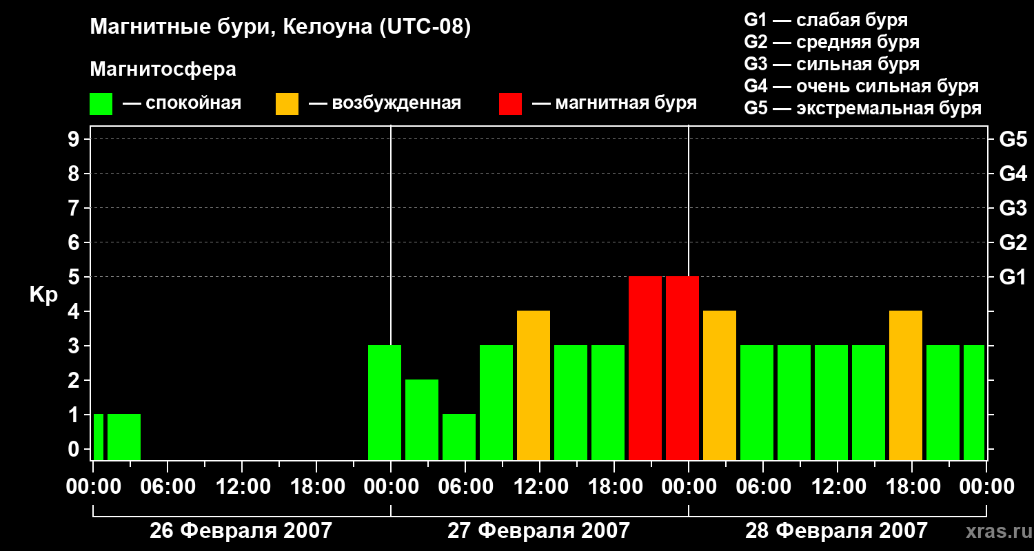 Магнитные бури в Келоуне — 28 февраля 2007 года
