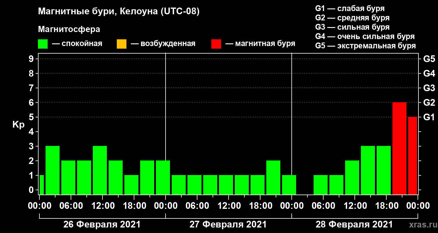 Магнитные бури в Келоуне 28 февраля 2021 года