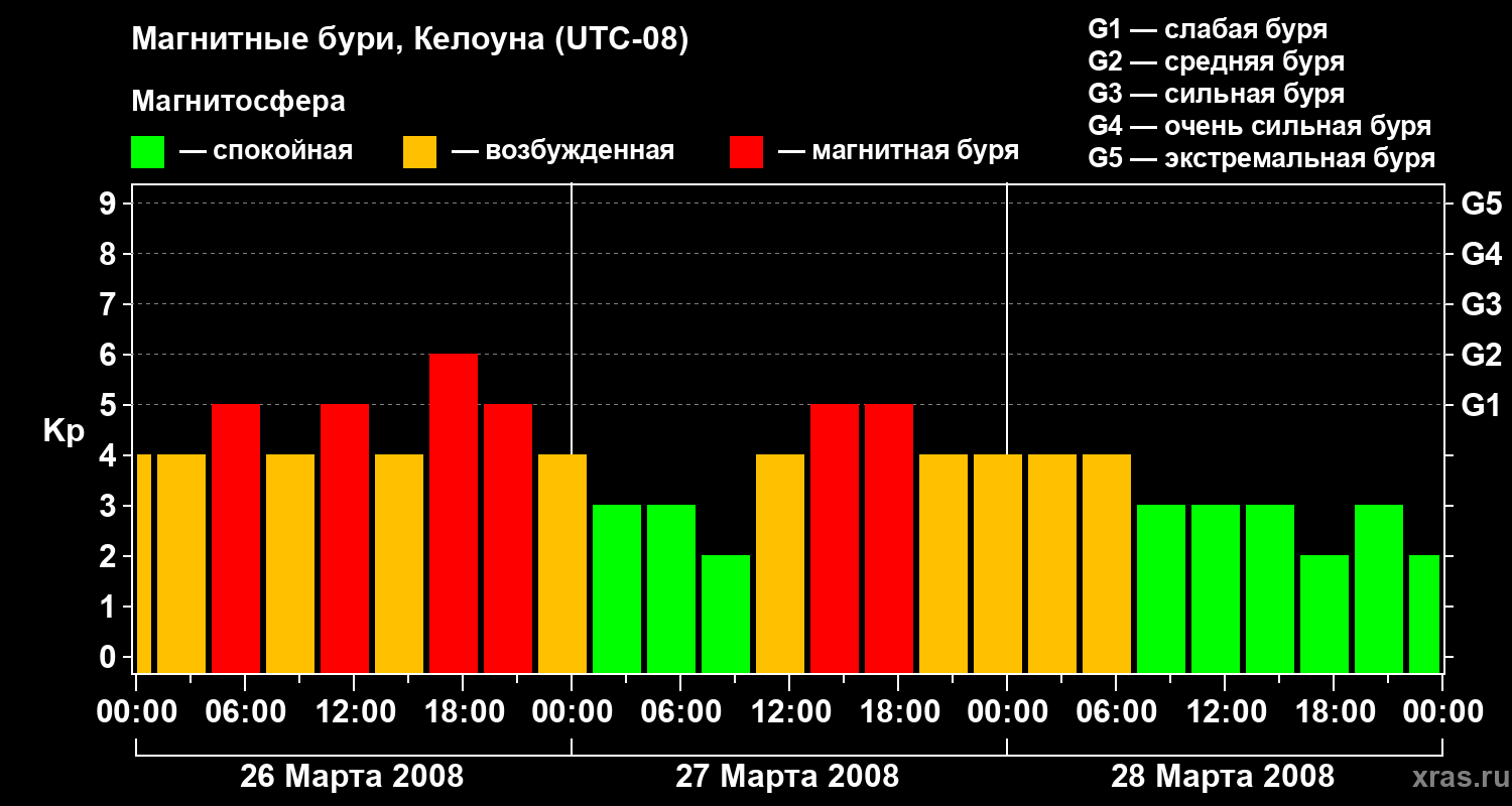 Магнитные бури в Келоуне — 28 марта 2008 года