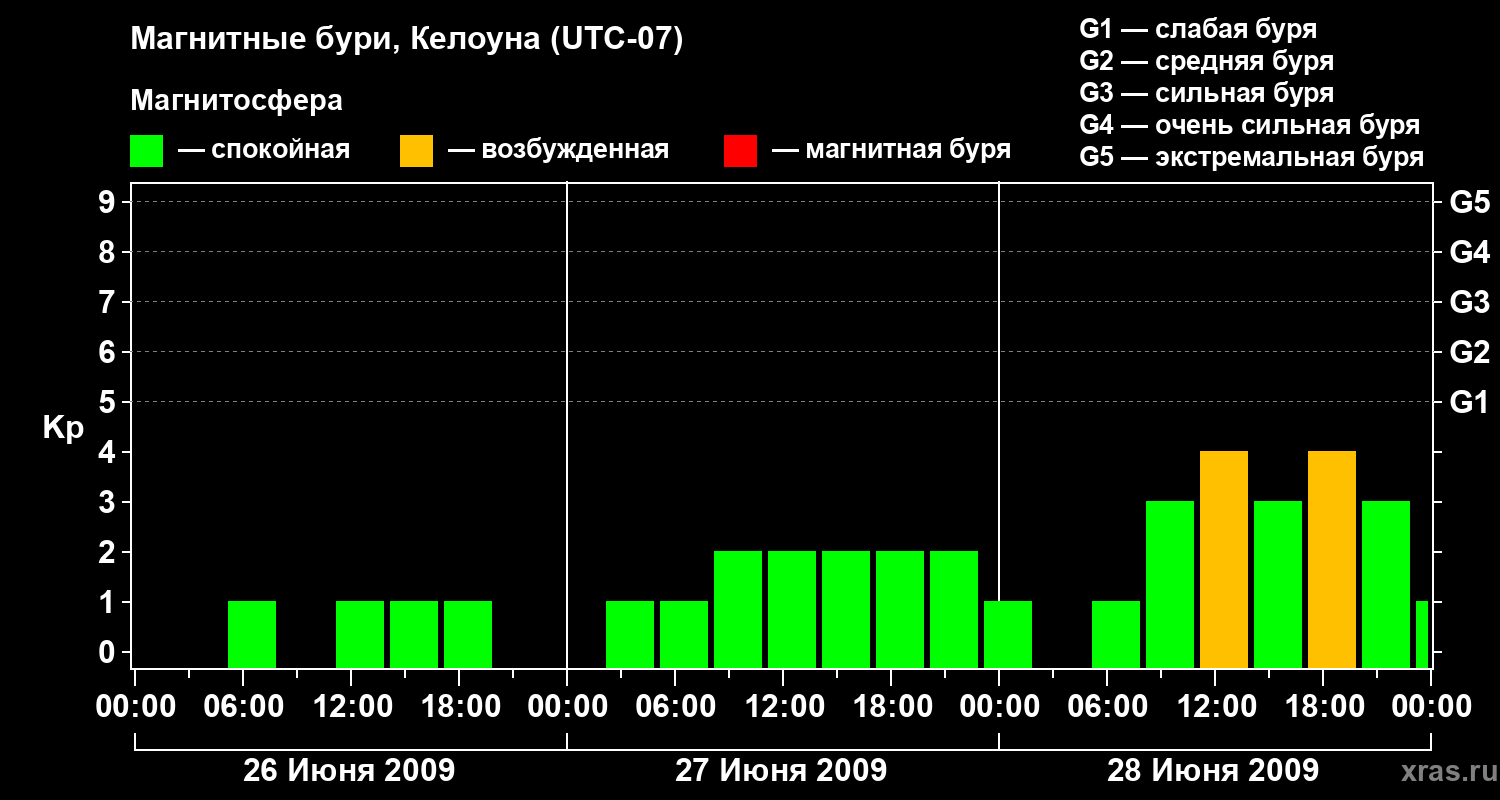 Магнитные бури в Келоуне — 28 июня 2009 года
