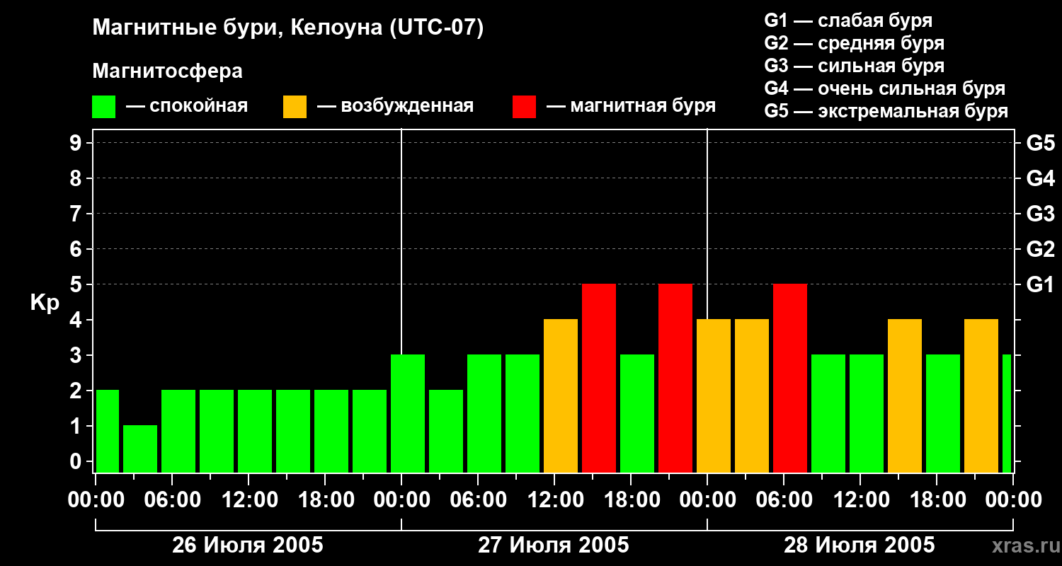 Магнитные бури в Келоуне — 28 июля 2005 года