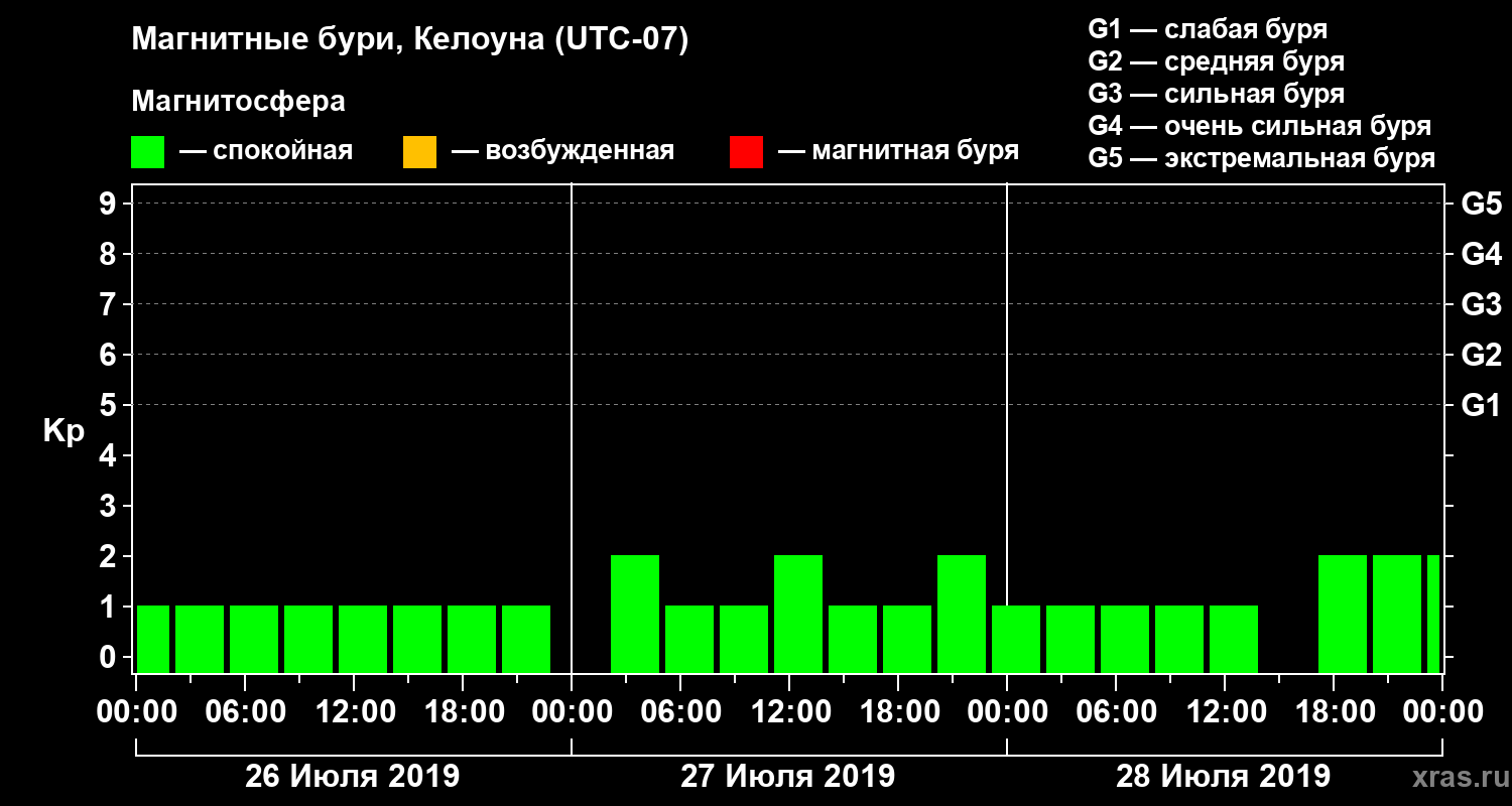 Магнитные бури в Келоуне — 28 июля 2019 года