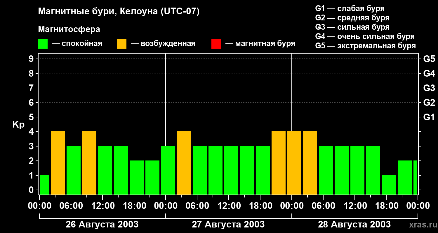 Магнитные бури в Келоуне — 28 августа 2003 года
