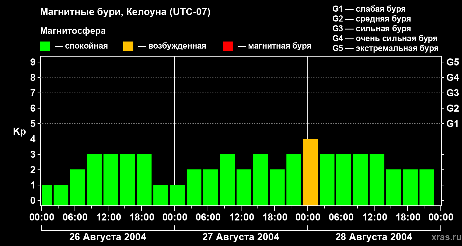 Магнитные бури в Келоуне — 28 августа 2004 года