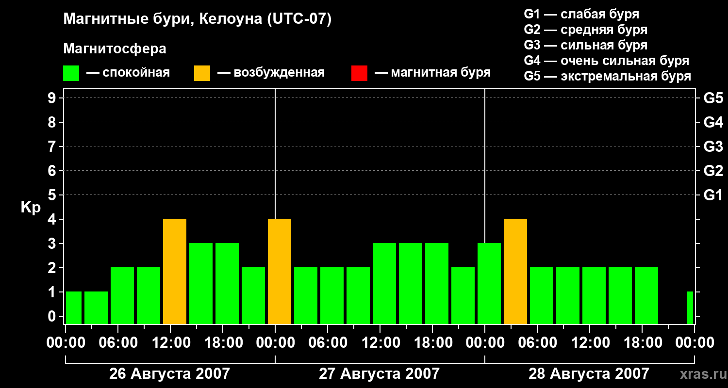 Магнитные бури в Келоуне — 28 августа 2007 года