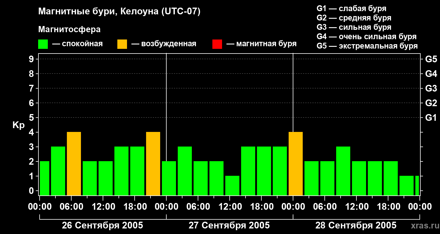 Магнитные бури в Келоуне 28 сентября 2005 года