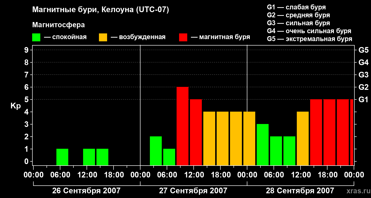 Магнитные бури в Келоуне 28 сентября 2007 года