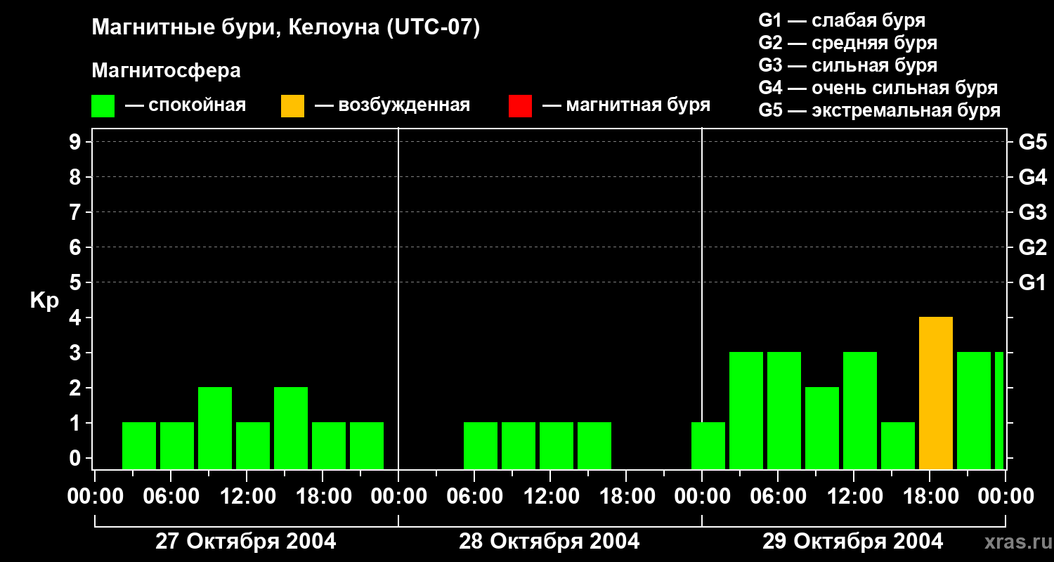 Магнитные бури в Келоуне — 29 октября 2004 года