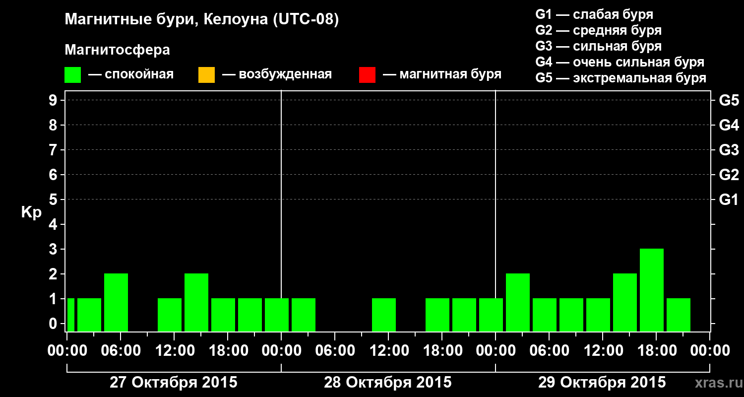 Магнитные бури в Келоуне — 29 октября 2015 года