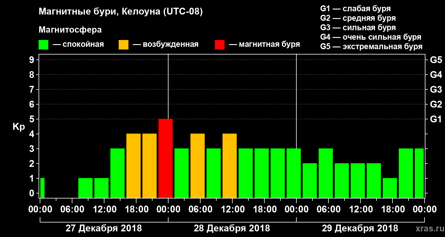Магнитные бури в Келоуне — 29 декабря 2018 года
