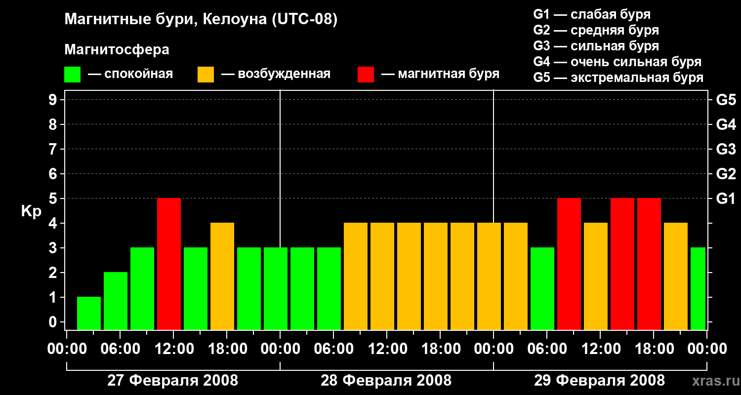 Магнитные бури в Келоуне — 29 февраля 2008 года