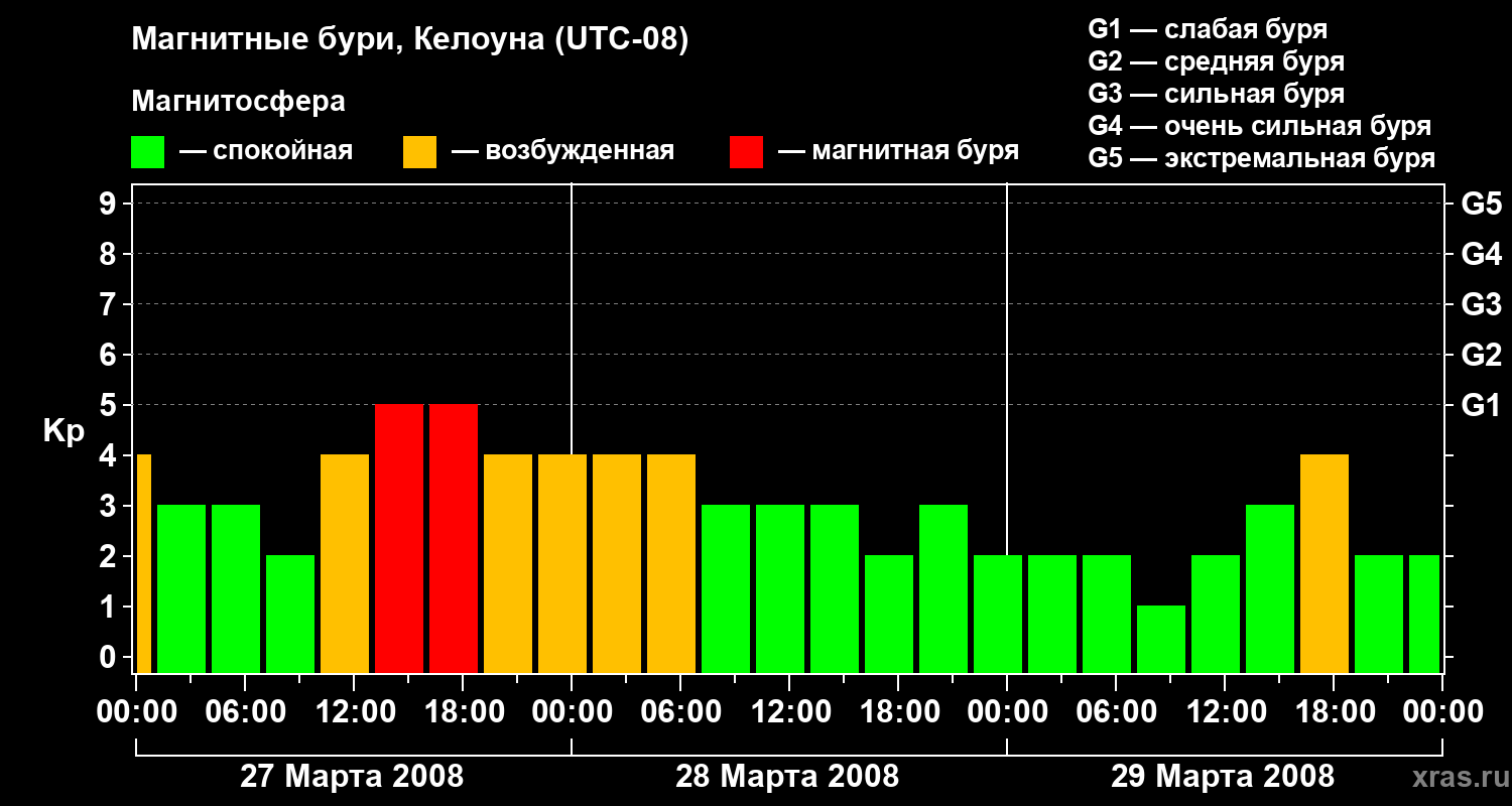 Магнитные бури в Келоуне — 29 марта 2008 года