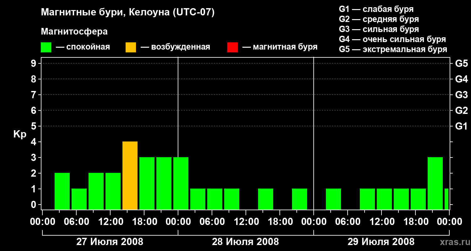 Магнитные бури в Келоуне — 29 июля 2008 года
