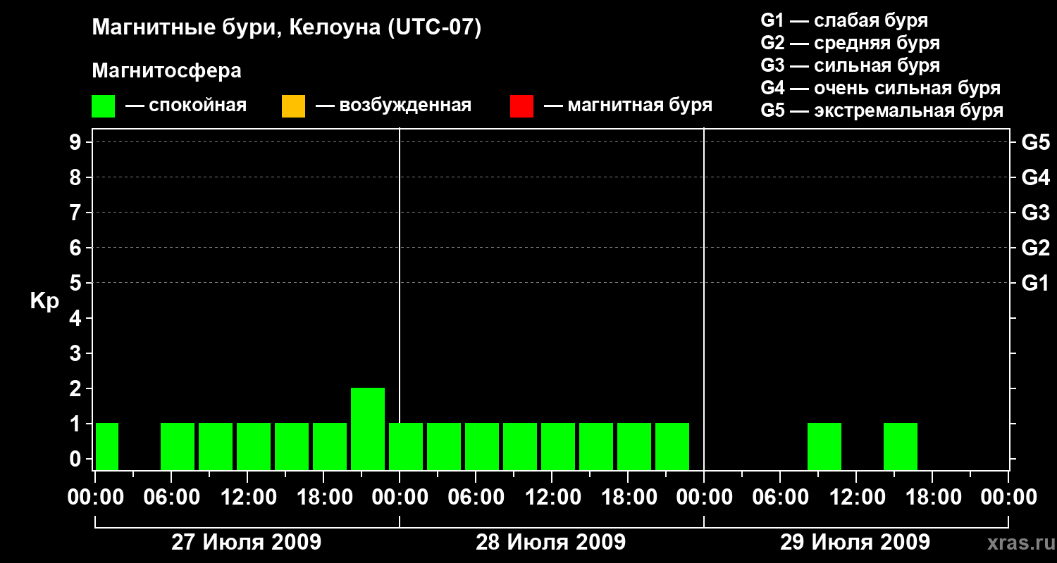 Магнитные бури в Келоуне — 29 июля 2009 года