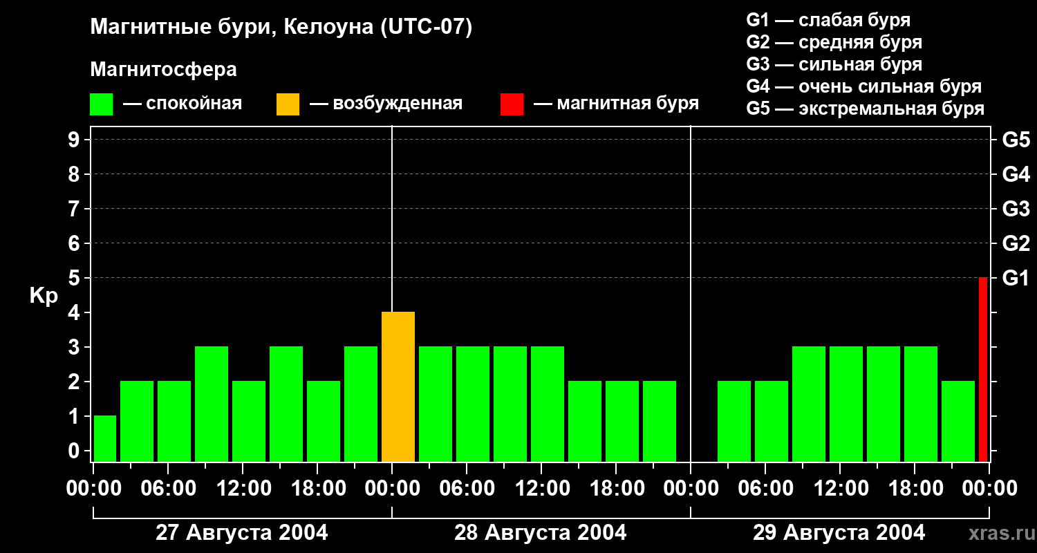 Магнитные бури в Келоуне — 29 августа 2004 года