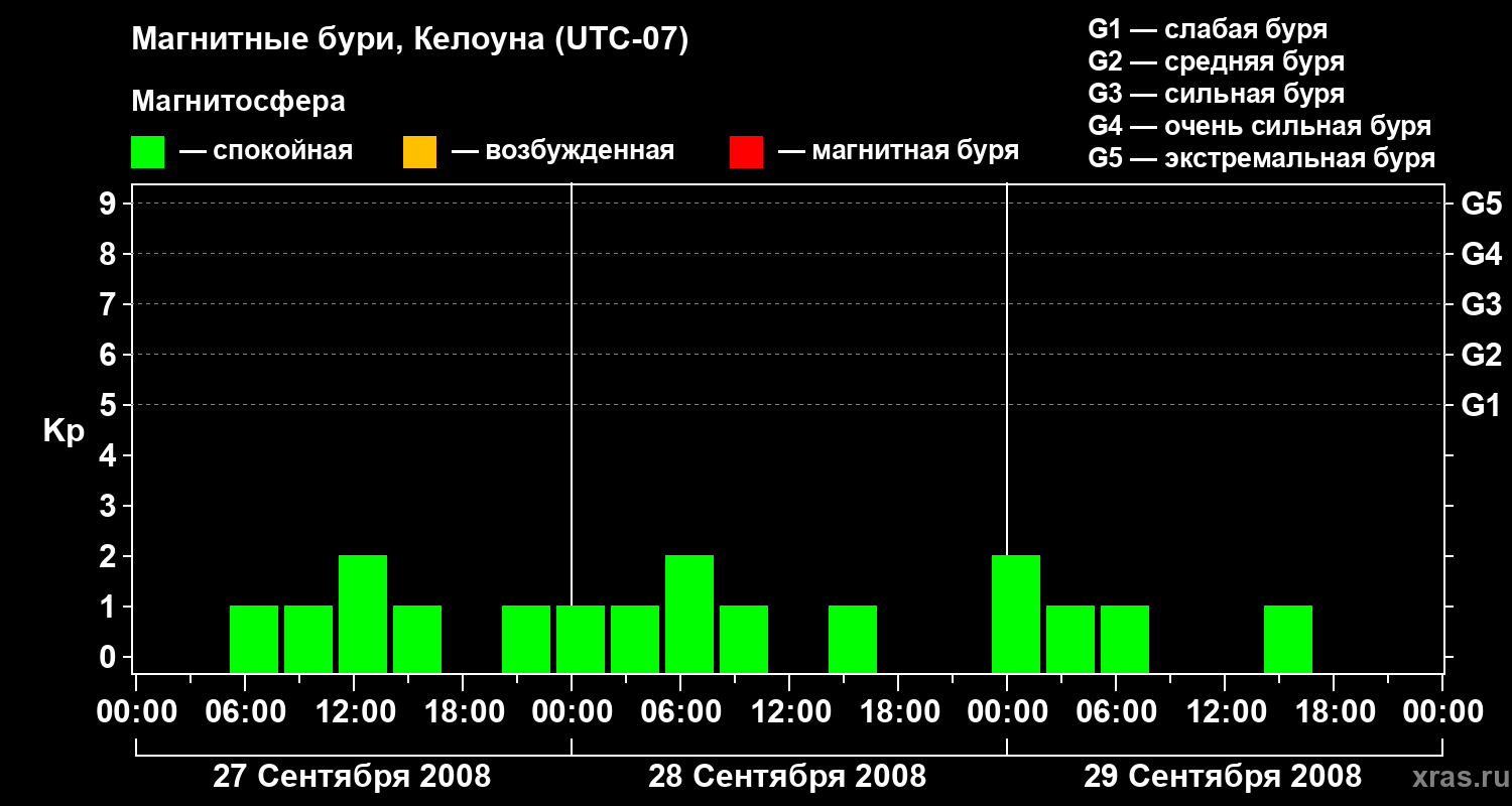 Магнитные бури в Келоуне 29 сентября 2008 года
