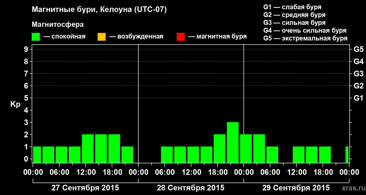 Магнитные бури в Келоуне 29 сентября 2015 года