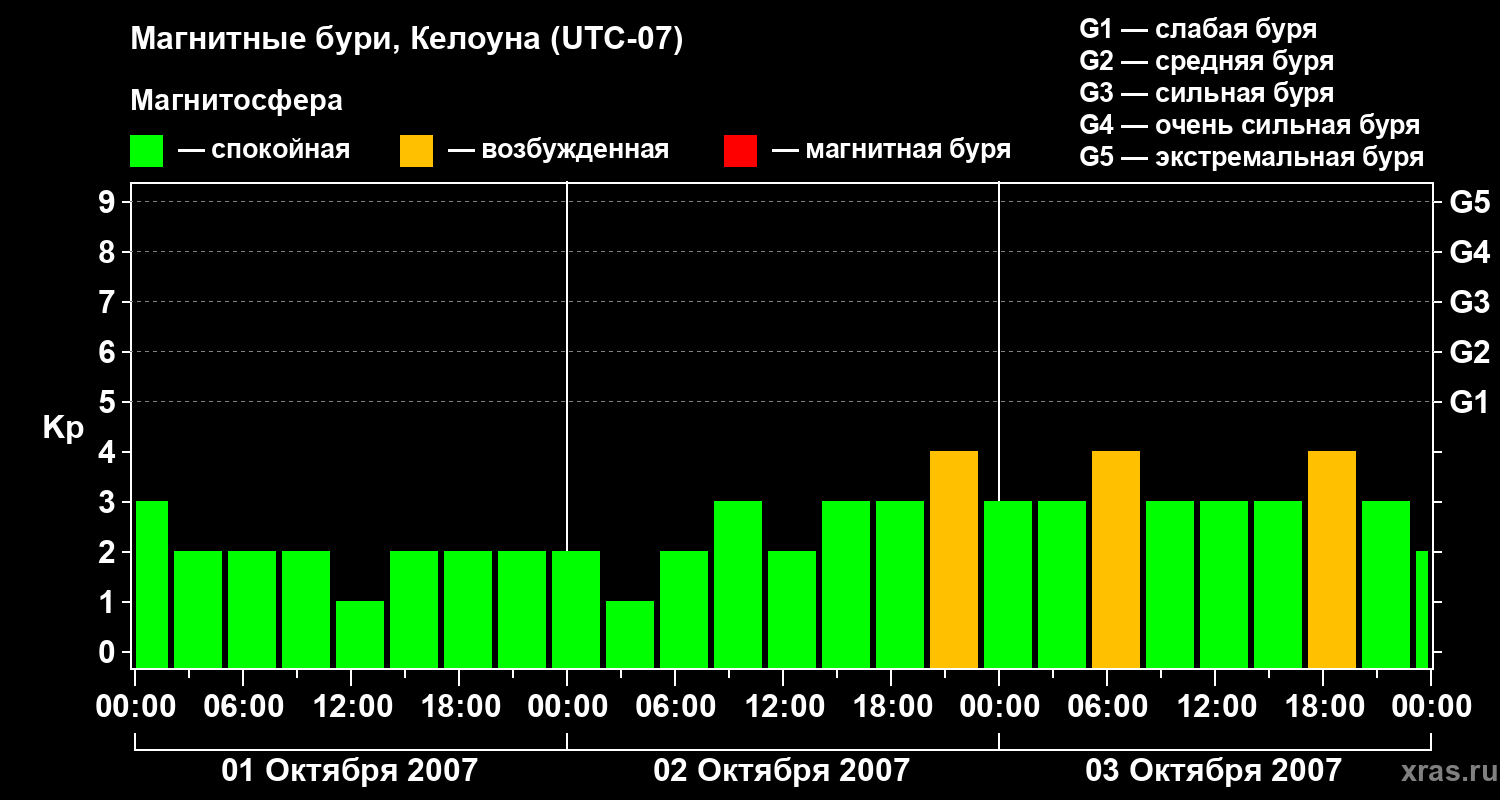 Магнитные бури в Келоуне — 3 октября 2007 года