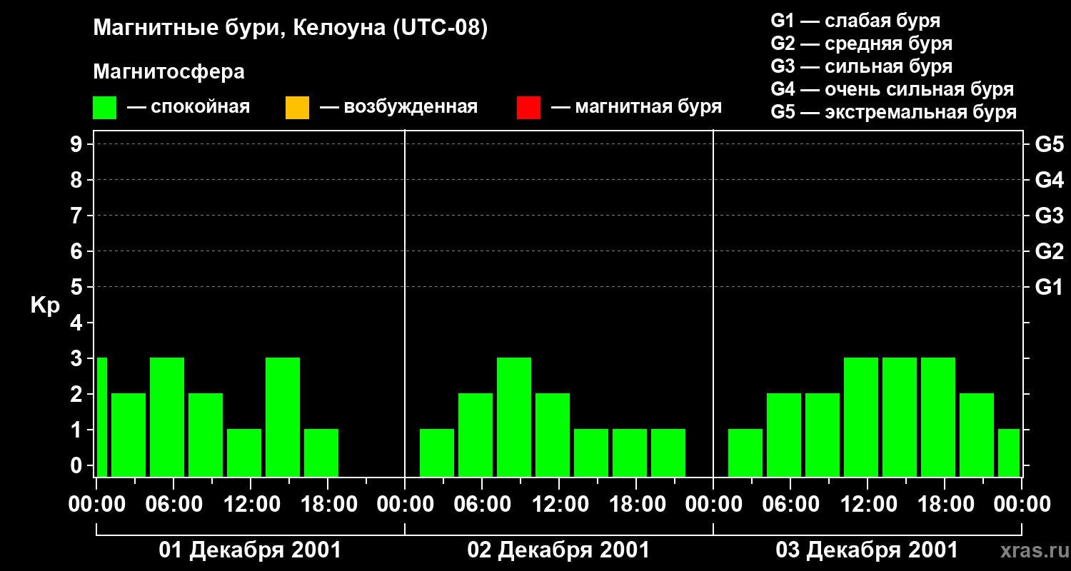Магнитные бури в Келоуне — 3 декабря 2001 года