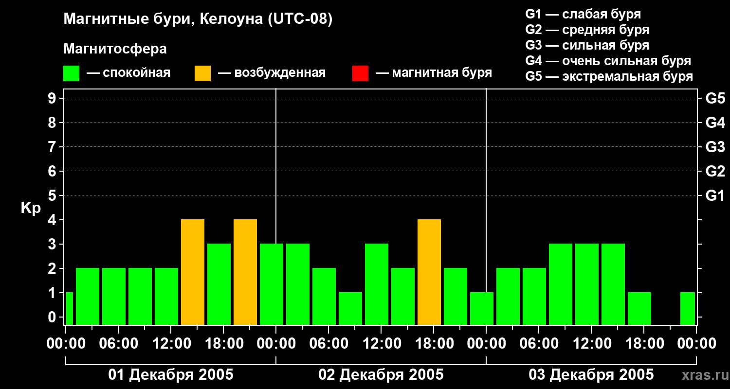 Магнитные бури в Келоуне — 3 декабря 2005 года