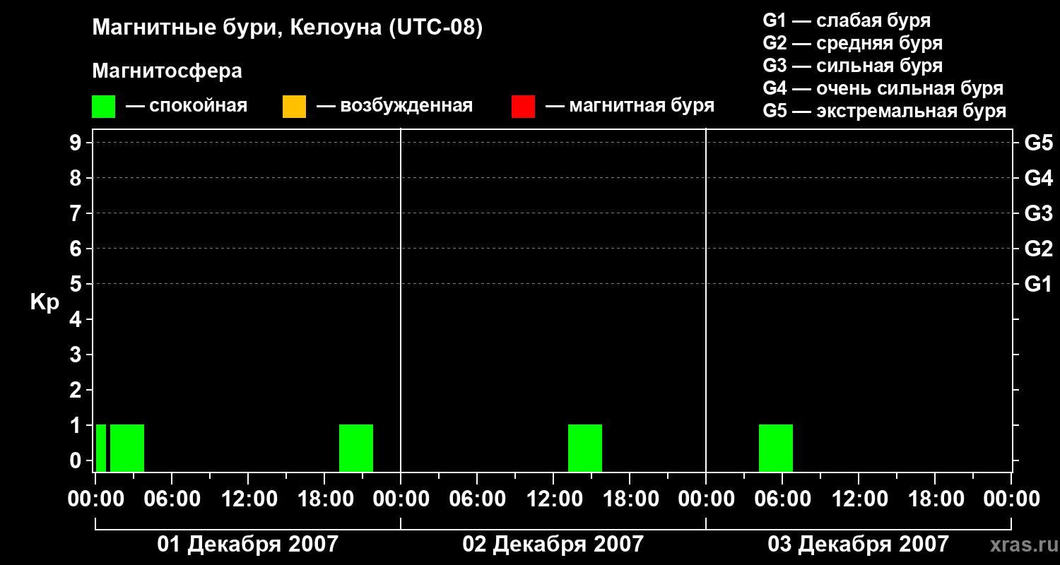 Магнитные бури в Келоуне — 3 декабря 2007 года