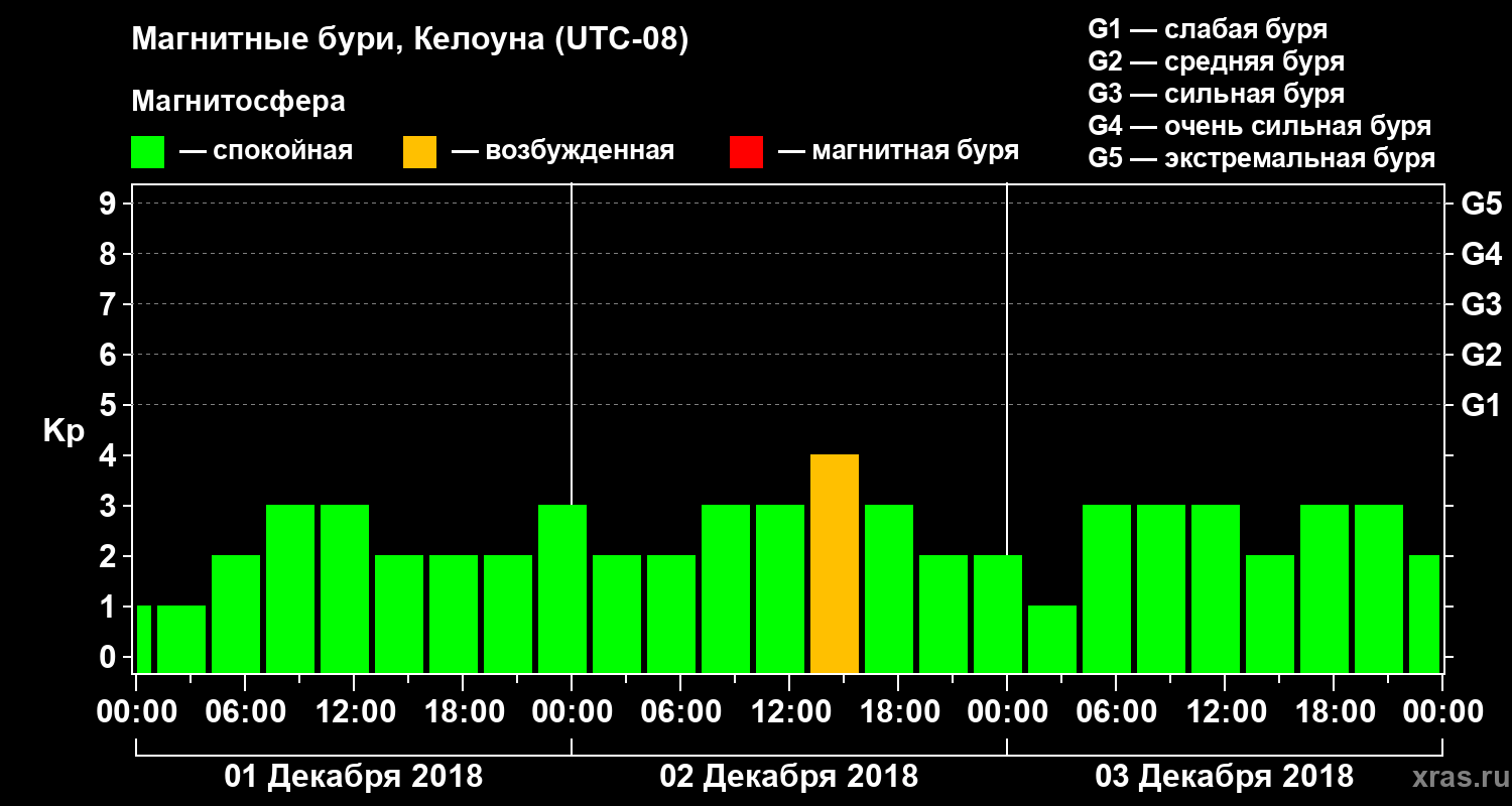 Магнитные бури в Келоуне — 3 декабря 2018 года