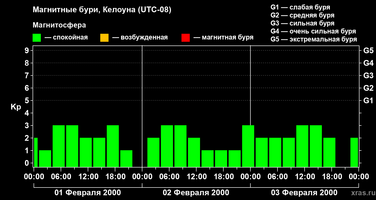 Магнитные бури в Келоуне — 3 февраля 2000 года