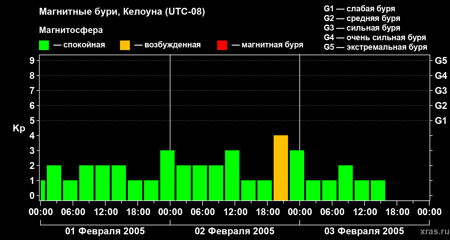 Магнитные бури в Келоуне — 3 февраля 2005 года