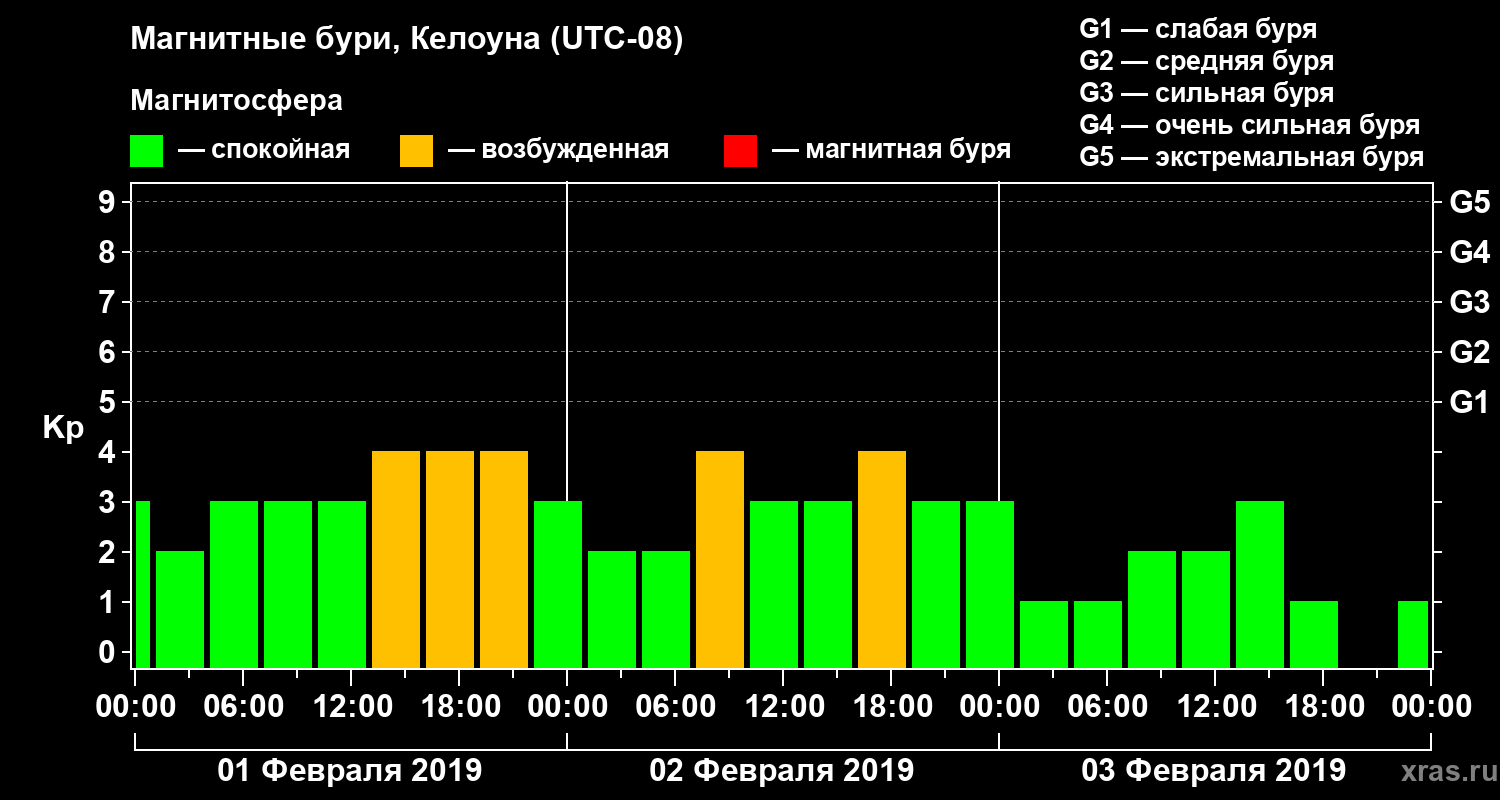 Магнитные бури в Келоуне 3 февраля 2019 года