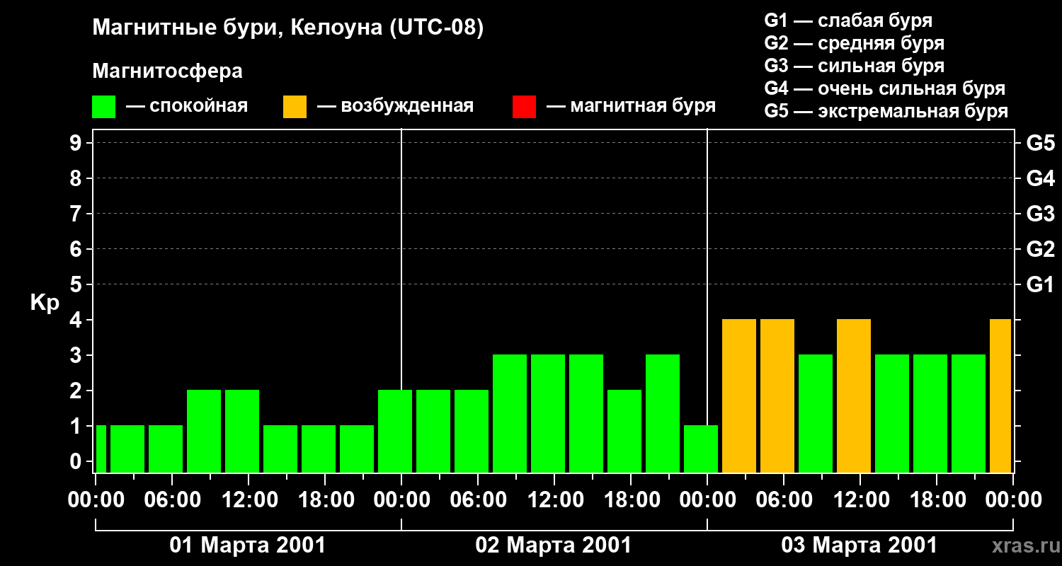 Магнитные бури в Келоуне — 3 марта 2001 года