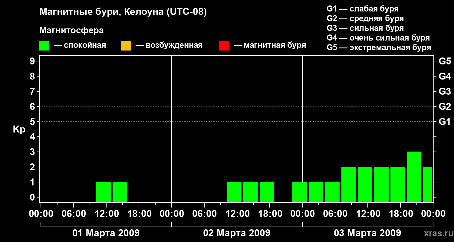 Магнитные бури в Келоуне — 3 марта 2009 года