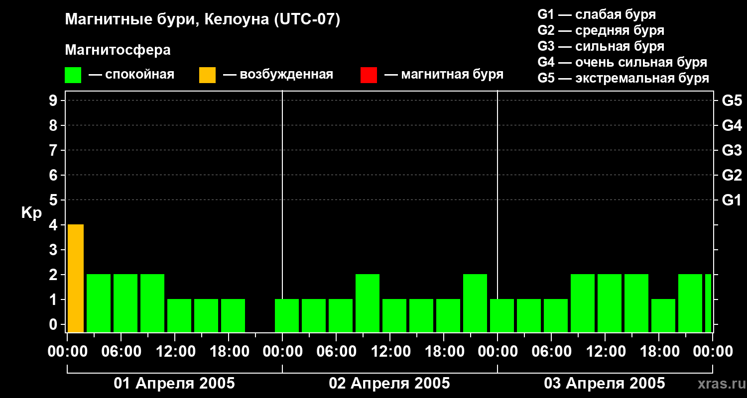 Магнитные бури в Келоуне — 3 апреля 2005 года